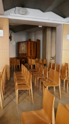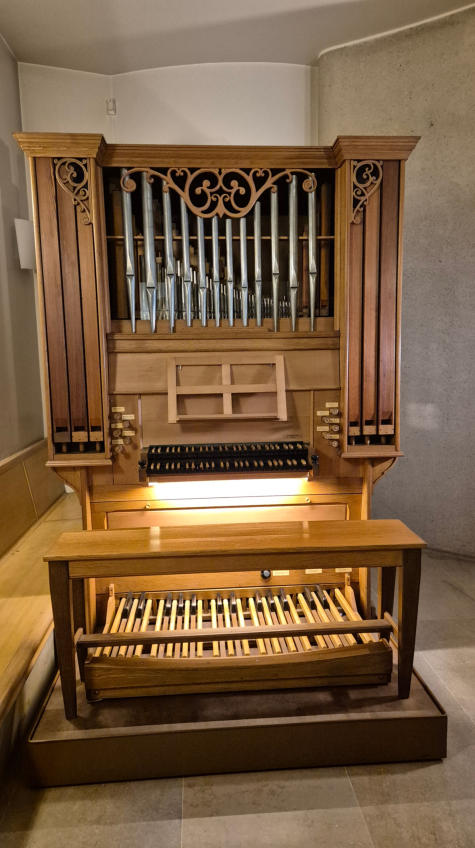 E6Built between 1995 and 1998, this new place of worship was equipped with a small Merklin organ, made available by its organist, René Desroches. In 2008 the chapel received an organ built by Paul Simond-Côte (1925-2007), and dated 1993. It was installed in the chapel by Yves Fossaert to support the prayer of the many passengers, travelers, workers of this district, whose chapel offers them a very precious stop and a space for contemplation very precious in the lively whirlwind of urban life.