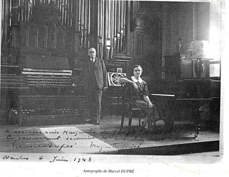 Marcel Dupre and his daughter Marguerite. The dedication is addressed
