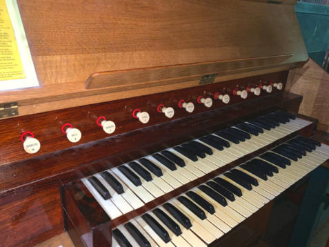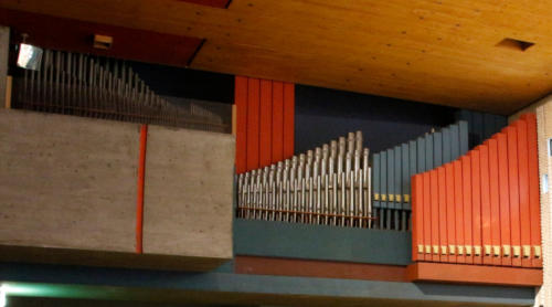 Grand-orgue (56 notes)Montre 8'Bourdon 8'Prestant 4'Doublette 2'Plein-jeu IV rgsRécit (56 notes)Flûte 8'Prestant italien 4'Quarte de nasard 2'Sesquialtera II rgsPédale (30 notes)Soubasse 16'Basse 8'Principal 4'Accouplement: Réc./G.O. Tirasses: G.O., Réc.