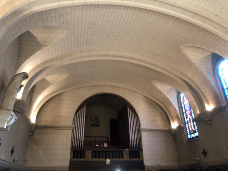 The chapel was built in Romano-Byzantine style by the architects Morize, Lacal and Boutin on the first floor of a stone and brick building. These materials are concealed inside by a decoration of false joints. Two statues, The Sacred Heart and The Virgin of Sorrow, dominate the wide barrel-vaulted nave, pierced on the south side by penetrating windows; A large organ gallery surmounts the entrance. The chapel has retained its decoration of the 30s: a sandstone base is surmounted by scenes from the Gospels depicted on enamelled and painted metal, and arranged throughout the chapel. The stained glass windows were made by Charles Champigneulle, Gruber and Lorin.Source: Dictionnaire des églises de Paris, p. 132.OrganisteFrançois Olivier