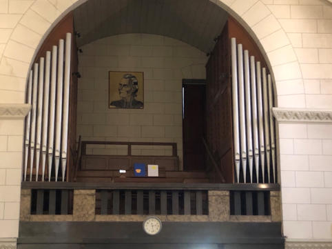 E6This instrument was built by Roethinger in 1951 and has two keyboards (one expressive), electrical traction and about ten stops. Thanks to François Olivier and Eric Lebrun for this information and photos.