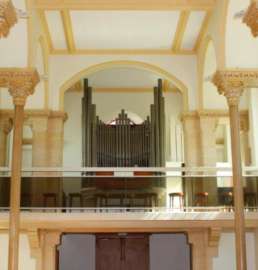 E6It is possible that the organ is built by Puget (about 1910), but there are very few things know. It is likely that the transformations including the façade are done by Beuchet-Debierre (Picaud, 1959). In 1972, the organ was changed by Jean Jonet and his successor Jean-Claude Alcouffe. The organ was dismantled and reassembled in 2017 by Yves Fossaert, because of the restoration of the chapel.This organ probably had a mechanical Bourdon 16 ' (pedal), probably in the rear. When it was reassembled in Paris, the pedal was made pneumatical, and then electrified by Jonnet. In 2017, Yves Fossaert restored the wind chests and made new mechanics for the pedal by removing all electrical additions. Curiously, the Bourdon 8 ' of the GO is in its first octave a 8 ' wooden open flute. Thanks to the organ builder Yves Fossaert for this information.
