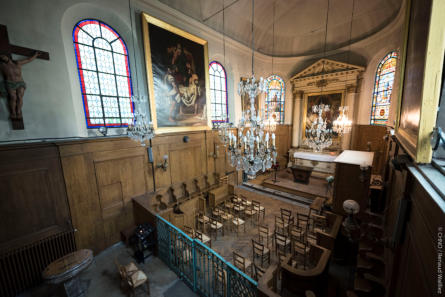 The Saint-Rémi chapel is one of the only remains of the former Hôtel des Mousquetaires noirs, built in 1699-1701 by R. de Cotte on the plans of J. Hardouin-Mansart, and disused and sold in 1775. Cardinal Louis de Rohan bought it in 1780 as an administrator, to transfer the institution of the Blind of the Quinze-Vingts, founded rue Saint-Honoré by Saint Louis between 1254 and 1261.The Saint-Rémi chapel, which took over the name of the church on Rue Saint-Honoré, was enlarged in 1789 by three bays and a tribune, to accommodate some of the furniture from the former chapel on Rue Saint-Honoré. Looted and closed between 1793 and 1800, it was then rented to the City of Paris throughout the nineteenth century to house the parish of Saint-Antoine, branch of the church of Sainte-Marguerite while serving as a chapel for the hospice.During the reconstruction of the entire hospital between 1956 and 1966, the nave of the chapel was demolished and then rebuilt. Source