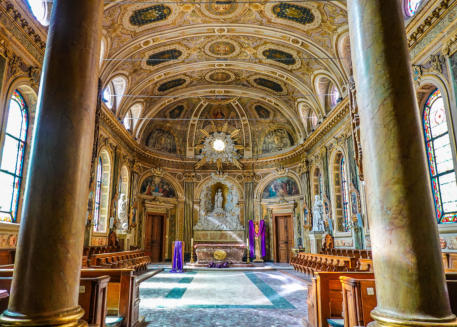 The Congregation of the Holy Spirit had acquired the land in 1731, but construction of the chapel began in 1769 with the architect Nicolas Le Camus de Mézières. The work was interrupted and resumed in 1775 with the architect Jean-François Chalgrin. The façade of the chapel with the building on rue Lhomond is decorated with a bas-relief by François Duret. The interior of the chapel was painted and decorated in 1876-1878. The seminary was closed in 1792. Its buildings were sold in 1796 and were given over to a paper factory and then, in 1813, by the École Normale Supérieure. In 1822, the community returned to its former premises, which had become the mother house of the Congregation of the Holy Spirit, founded by Father François Libermann (1802-1852)Classical in style, the chapel has a rich painted interior decoration. The chapel is divided in two by a gallery that once marked the separation between the religious and the laity. The organ gallery is accessed through the bedroom and office of the founder, Father Libermann, which adjoins the gallery directly.