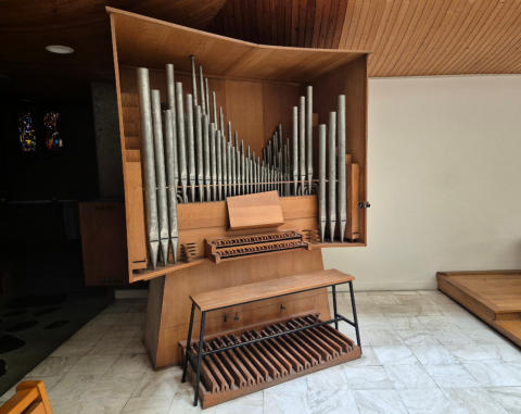 Clavier I (56 notes)Gemshorn 8’ Montre 4’Quinte 2/3’ Octave 1/2’Clavier IIBourdon 8' Doublette 2’Sesquialter II RPedal (32 notes)Tir I, Tir II, I/II